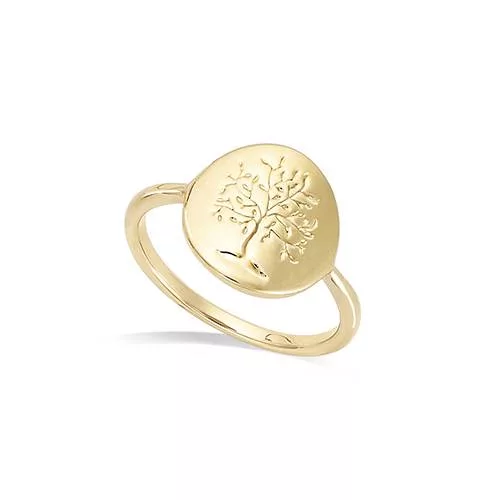 Bague en plaqué or ornée d’une médaille ronde avec motif Arbre de Vie. Elégante et symbolique, elle représente la force, l’équilibre et la croissance.