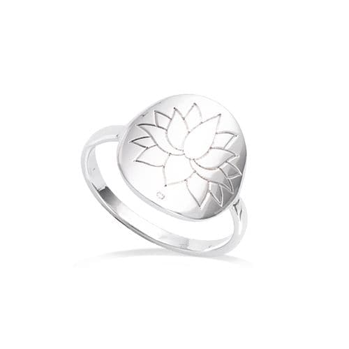 Bague forme ronde motif fleur de lotus argent rhodié avec cz