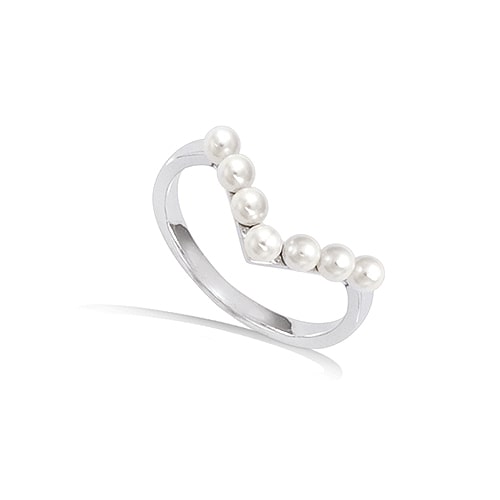 Bague forme V avec perles synthétique blanche argent rhodié