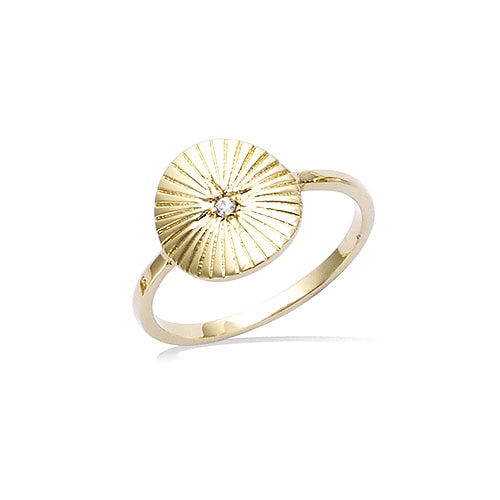 Bague forme ronde striée avec oxyde blanc plaqué or