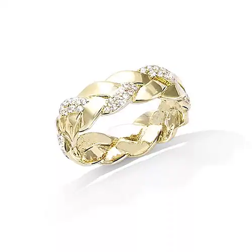 Bague tressée oxydes blancs en plaqué or haute qualité.