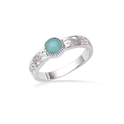 Bague filigrane avec pierre synthétique couleur amazonite argent rhodié
