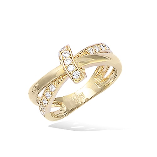Bague croisée oxydes blancs plaqué or