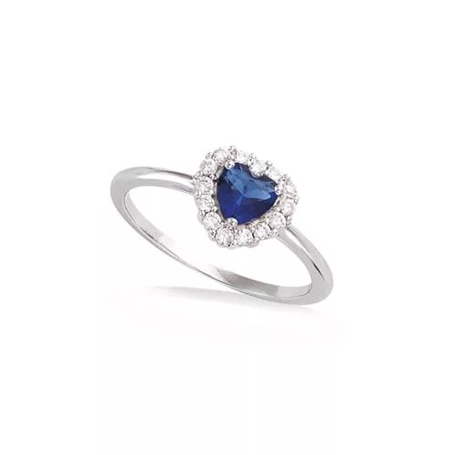 Bague coeur saphir bleu et entourage oxydes blancs conçu en argent 925.