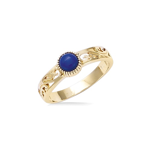 Bague filigrane avec pierre ronde synthétique couleur bleue foncée plaqué or