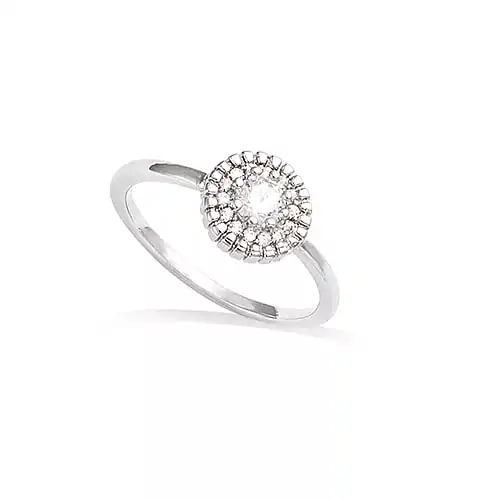 Bague halo scintillant entourage pavé oxydes de zirconium + pointillé argent rhodié