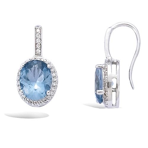 Boucle d’oreilles ovale verre aquamarine entourage cz argent rhodié