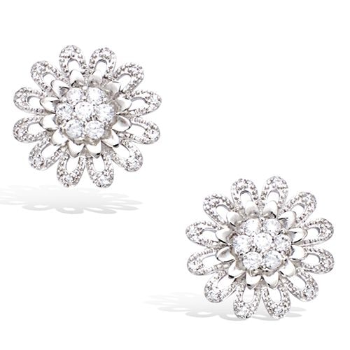 Boucle oreille forme fleur oxydes blancs argent rhodié