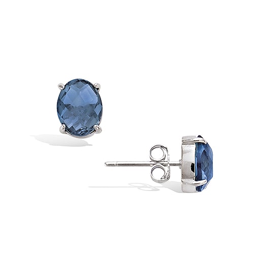 Boucle d’oreille forme ovale couleur london blue  argent rhodié