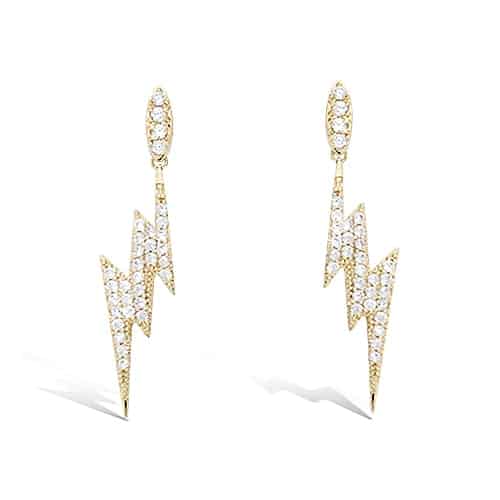 Boucle d’oreille motif éclair pavage oxydes blancs plaqué or