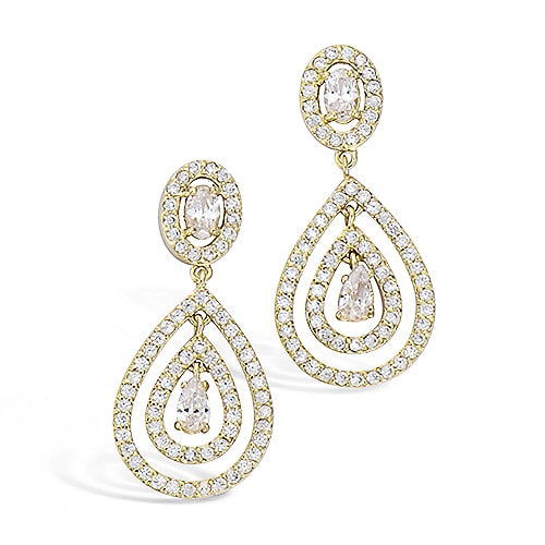 Boucle d’oreille forme goutte évidée avec oxydes blancs plaqué or