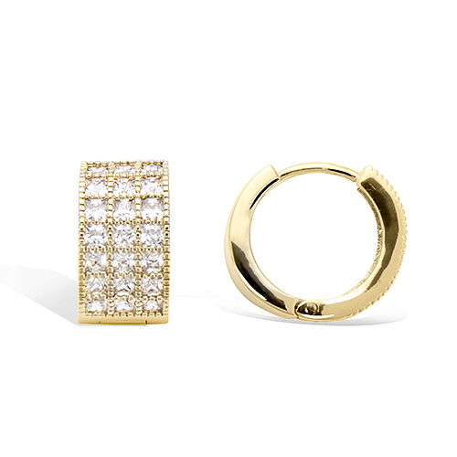Boucle oreille créole avec 3 rangées oxydes blancs plaqué or