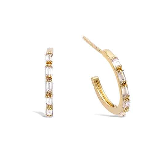 Boucle d’oreille demi créole oxydes blancs en forme baguettes plaqué or