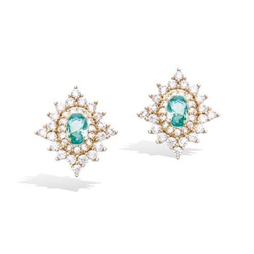 Boucle oreille étoile scintillante avec verre couleur verte plaqué or