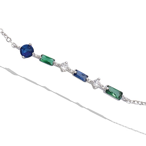 Bracelet verre couleur saphir et émeraude + cz argent rhodié