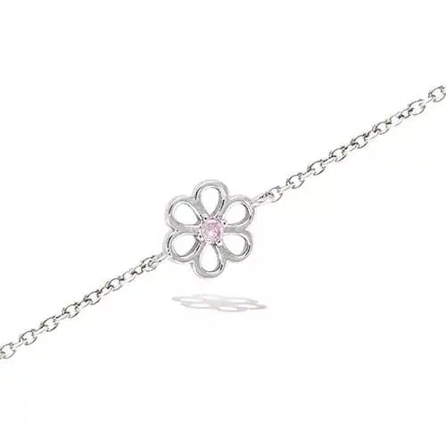 Ce bracelet fleur en argent 925 sublimé par un oxyde rose scintillant symbolise la féminité et la douceur. Léger, romantique et intemporel, il habille votre poignet avec élégance.