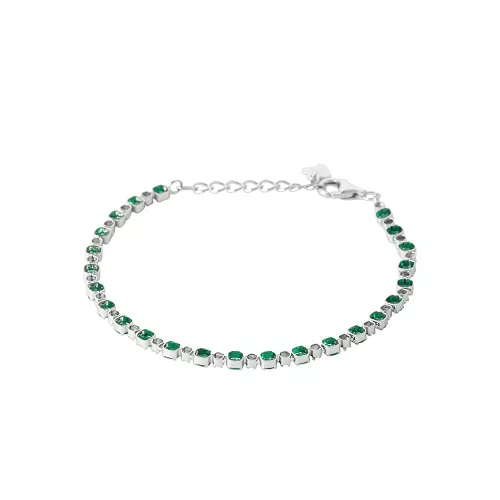 Bracelet pierres vertes et zirconiums blancs élaboré en argent 925 rhodié.