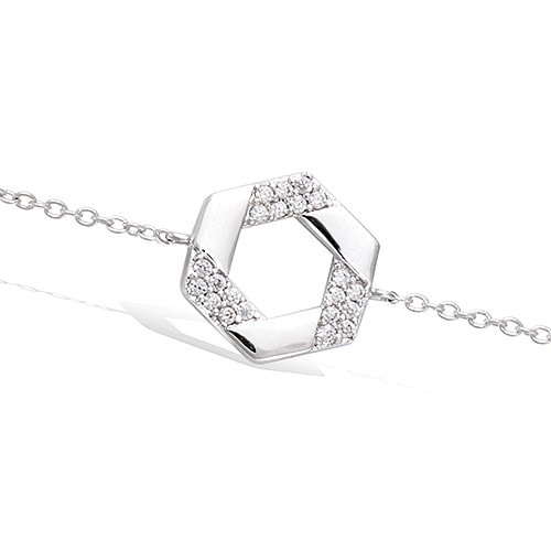 Bracelet forme géométrique évidée oxydes blancs argent rhodié