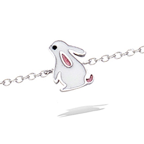 Bracelet lapin email blanc et rose argent rhodié