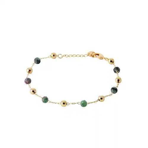 Bracelet alterné zoisite rubis conçu en plaqué or haut qualité.