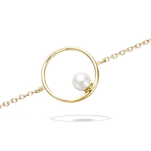 Bracelet cercle avec perle synthétique blanche plaqué or