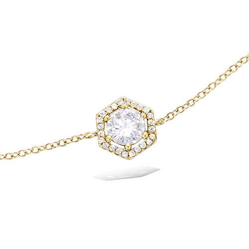 Bracelet forme hexagonale oxyde blanc entourage cz plaqué or
