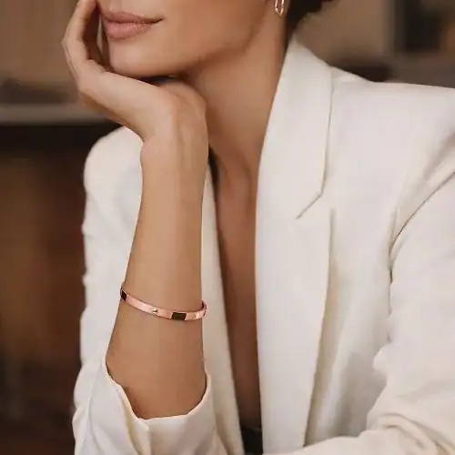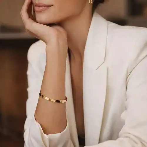 Bracelet jonc lisse réalisé en argent 925, plaqué or 3 microns ou plaqué or rose, ce bracelet allie résistance, confort et raffinement.