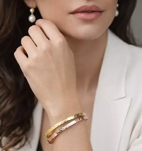 Bracelet jonc martelé conçu en argent 925 ou en plaqué or 3 microns.