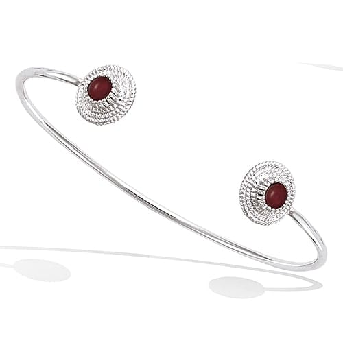 Bracelet jonc forme ronde texturé avec pierre synthétique en argent rhodié