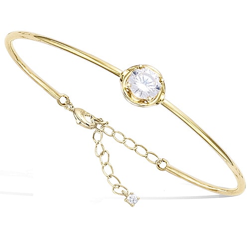 Bracelet jonc lisse avec chainette oxydes blancs plaqué or
