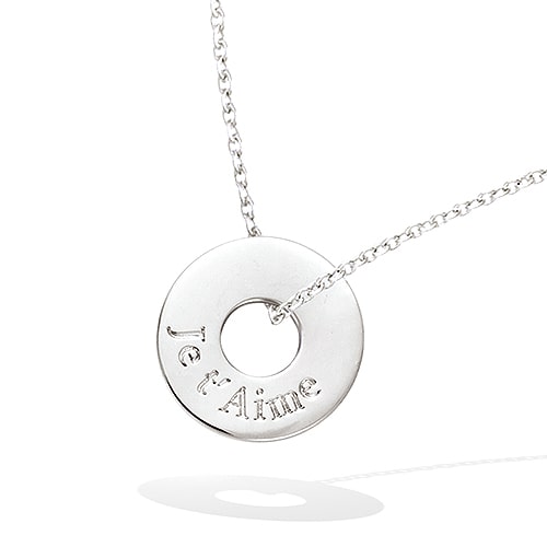 Collier anneau avec gravure Je t’aime argent rhodié