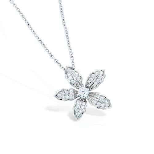 Collier fleur étoile pavée oxydes blancs argent rhodié
