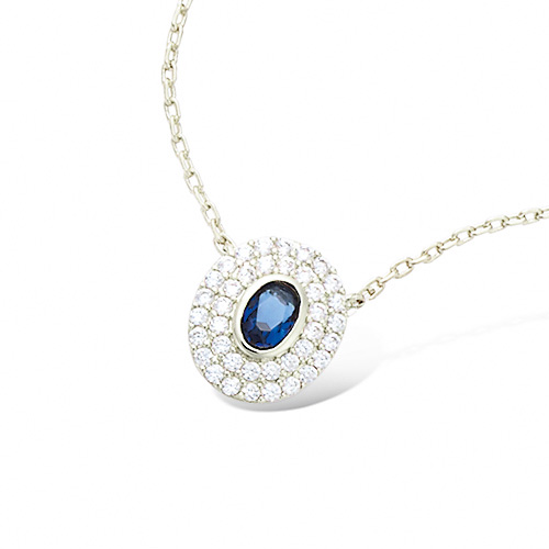 Collier ovale entourage cz argent rhodié