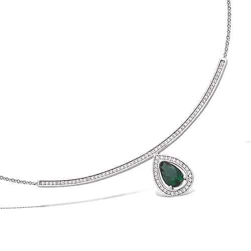 Collier arc oxydes blancs + forme poire oxyde couleur émeraude ou saphir argent rhodié