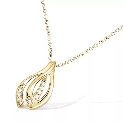 Collier plaqué or 3 microns au pendentif entrelacé, délicatement serti d’oxydes blancs scintillants.