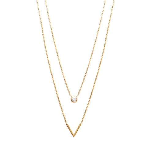 Collier double rang forme V avec oxyde de zirconium plaqué or