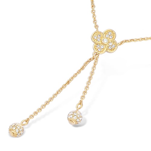 Collier fleur pendant deux boules oxydes blancs plaqué or