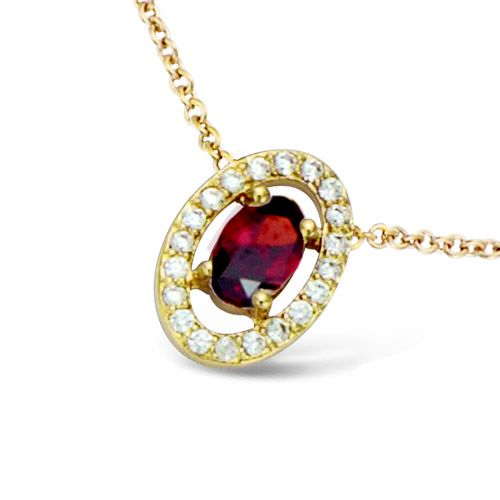 Collier forme ovale oxyde grenat entourage oxydes blancs plaqué or