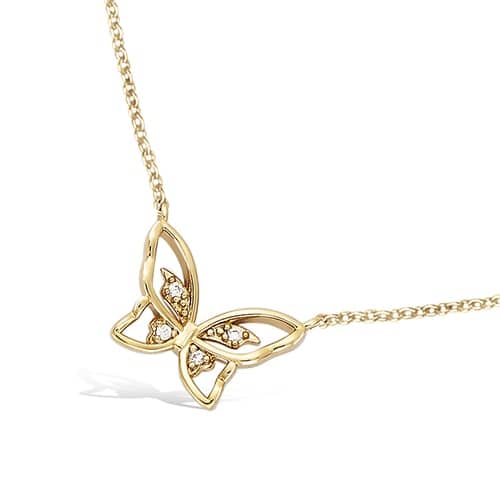 Collier forme papillon lisse évidé + oxydes blancs plaqué or