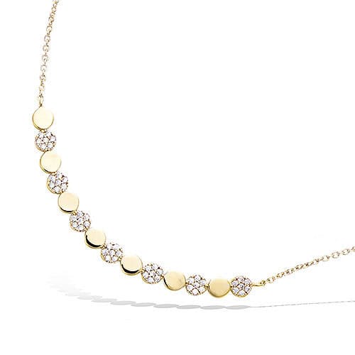 Collier pastilles alternées et lisses oxydes blancs plaqué or
