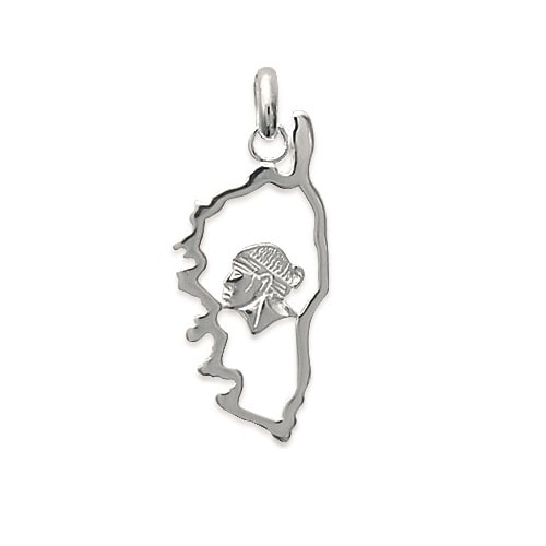 Pendentif l’ile de Corse avec profil d’une tête de Maure argent rhodié