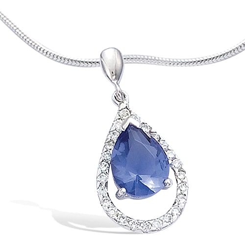 Pendentif forme goutte verre Tanzanite + oxydes de zirconium argent rhodié