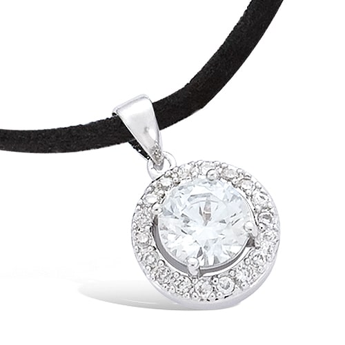 Pendentif rond solitaire oxyde blanc + entourage CZ argent rhodié