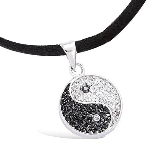 Pendentif Ying Yang oxydes blancs et noirs argent rhodié