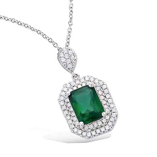 Pendentif rectangle émeraude entourage oxydes blancs argent rhodié